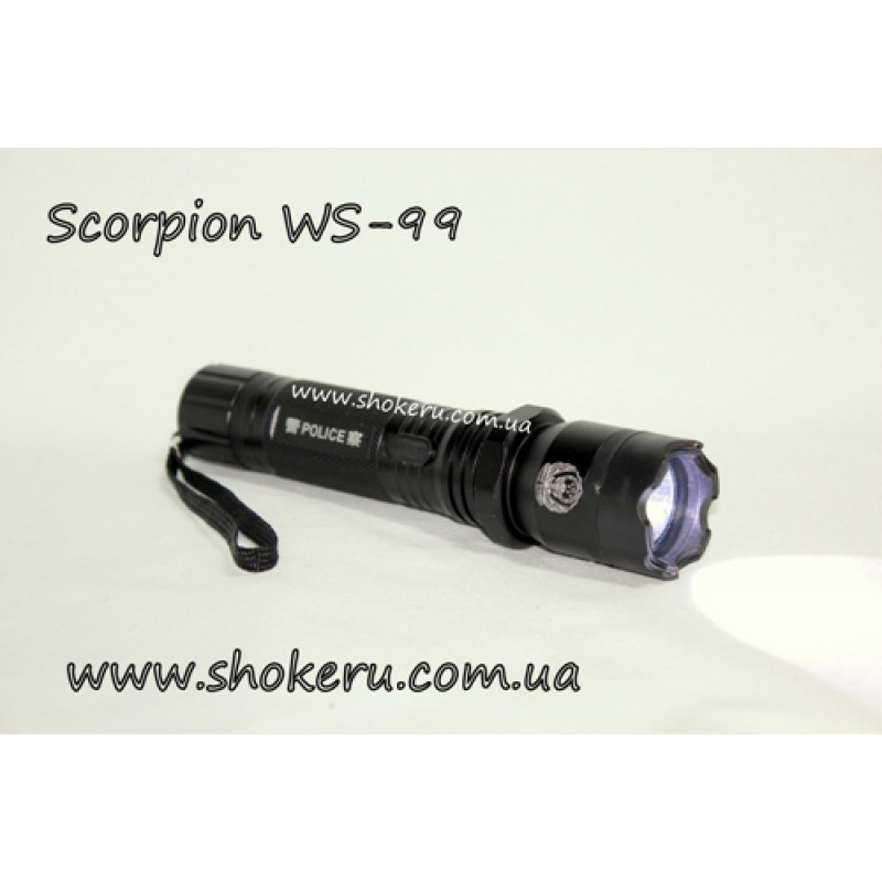 По поражающим характеристикам  электрошокер Scorpion (Скорпион) WS-99 Pro  *POLICE* превосходит все модели доступные в Украине и СНГ. Шокер способен нейтрализовать человека любой комплекции в любом состоянии при минимальной продолжительности воздействия. Он эффективен против собак любых пород. Стаи дворовых собак мгновенно разбегаются, услышав звук электрического разрядника.