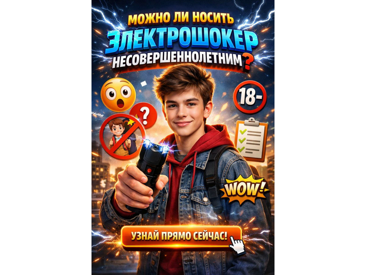 Прямого заборони на носіння електрошокера неповнолітнім у законах немає. Якщо батьки купили і передали - підліток може носити його в рюкзаку чи кишені. Це не порушення. Поліція може запитати походження, але якщо відповідь «батьки купили і дали» — питань зазвичай немає.