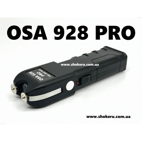 OSA 928 PRO — компактний електрошокер із антизахватними пластинами по боках корпусу. Він простий у використанні, не потребує ліцензії та допомагає виграти час у стресовій ситуації. Корпус ударостійкий, хват зручний, є вбудований ліхтарик.